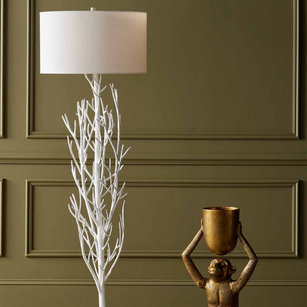 Торшер белый с цилиндрическим абажуром и каркасом в виде дерева Branched Tree