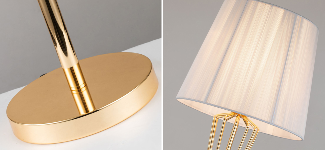 Каркас цвета золотой гальваники, абажур из серой нити.