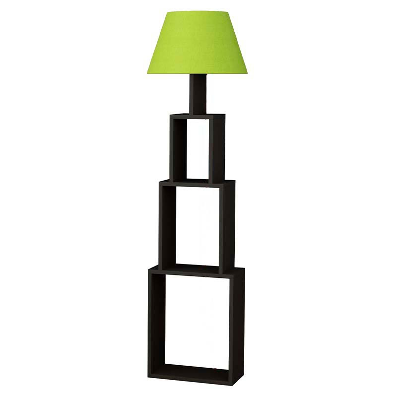 Торшер с темно-серым каркасом с 3-мя полками и светло-зеленым тканевым абажуром TOWER FLOOR LAMP GREEN