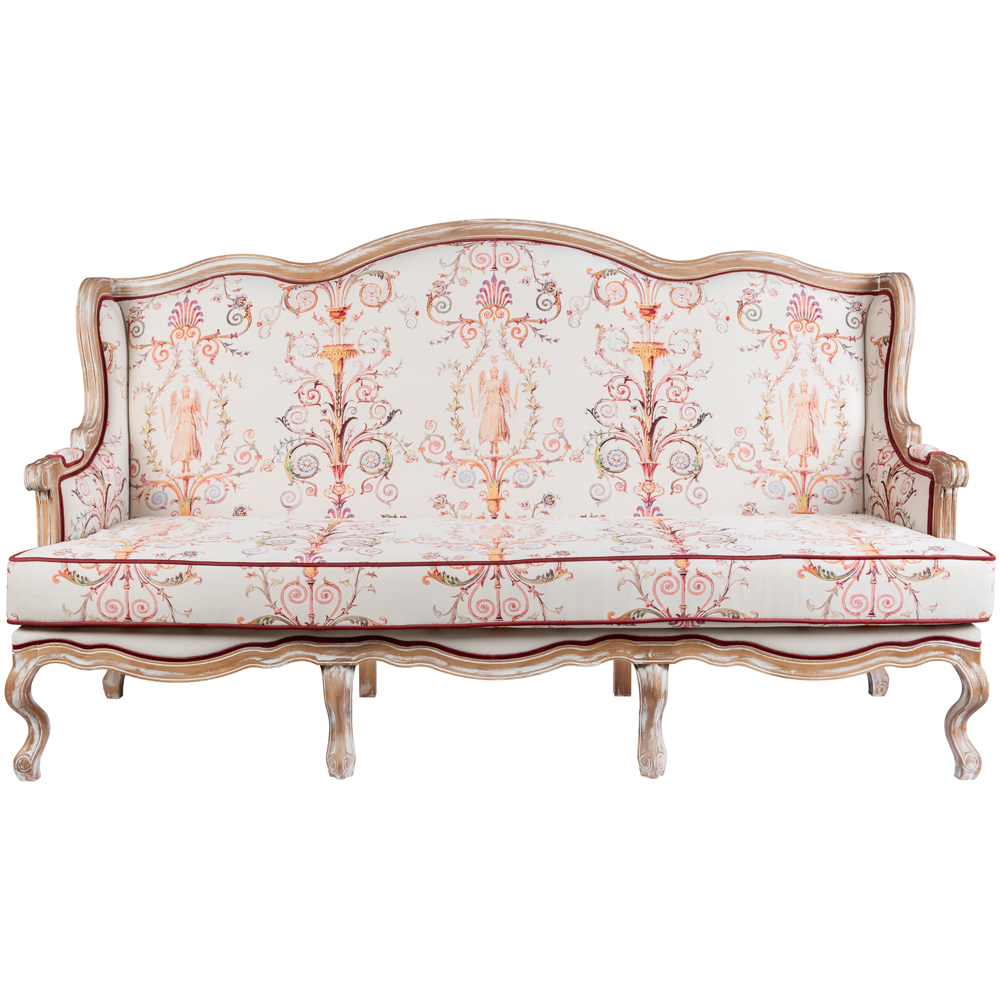 Трехместный диван из массива бука бежевый с растительным орнаментом Raffael Renaissance Beige Sofa