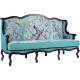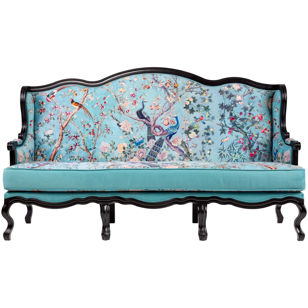 Трехместный диван из натурального бука бирюзовый с изображением птиц и цветов Turquoise Chinoiserie Garden Sofa