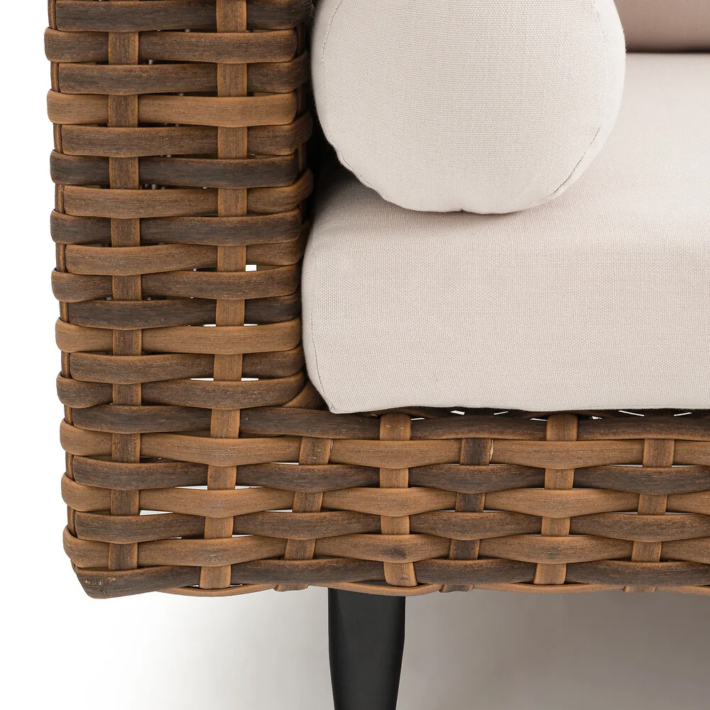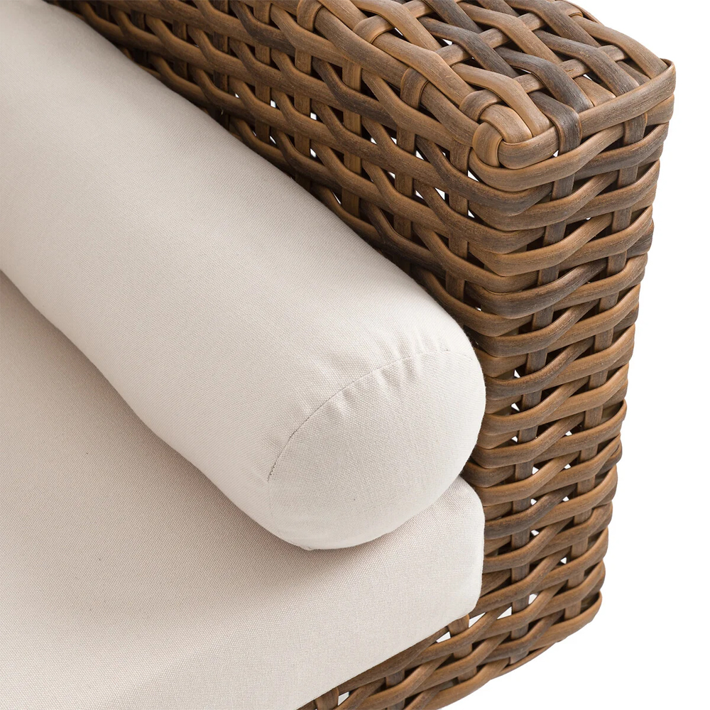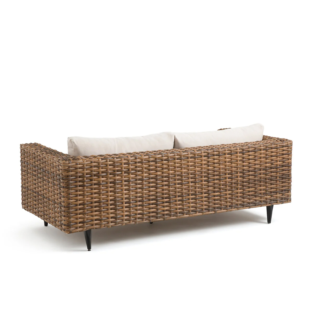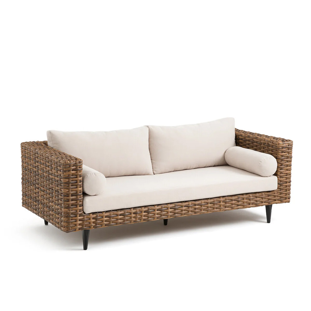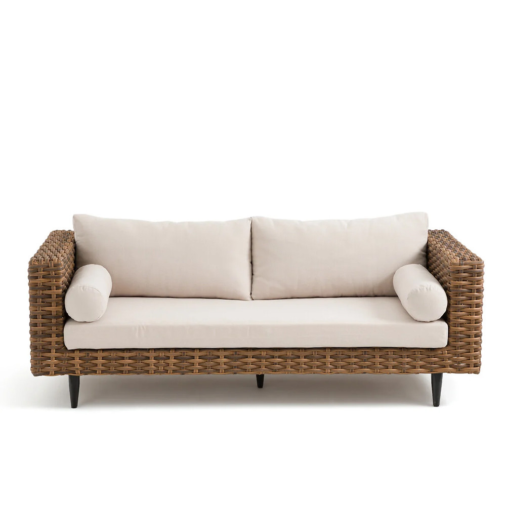Большой размер и не выходящий из моды стиль: это роскошный и гостеприимный диван. Созданный, чтобы радовать вас на протяжении многих лет, прочный каркас из стали, обшитый плетеным пластиком, создает роскошный эффект ротанга.