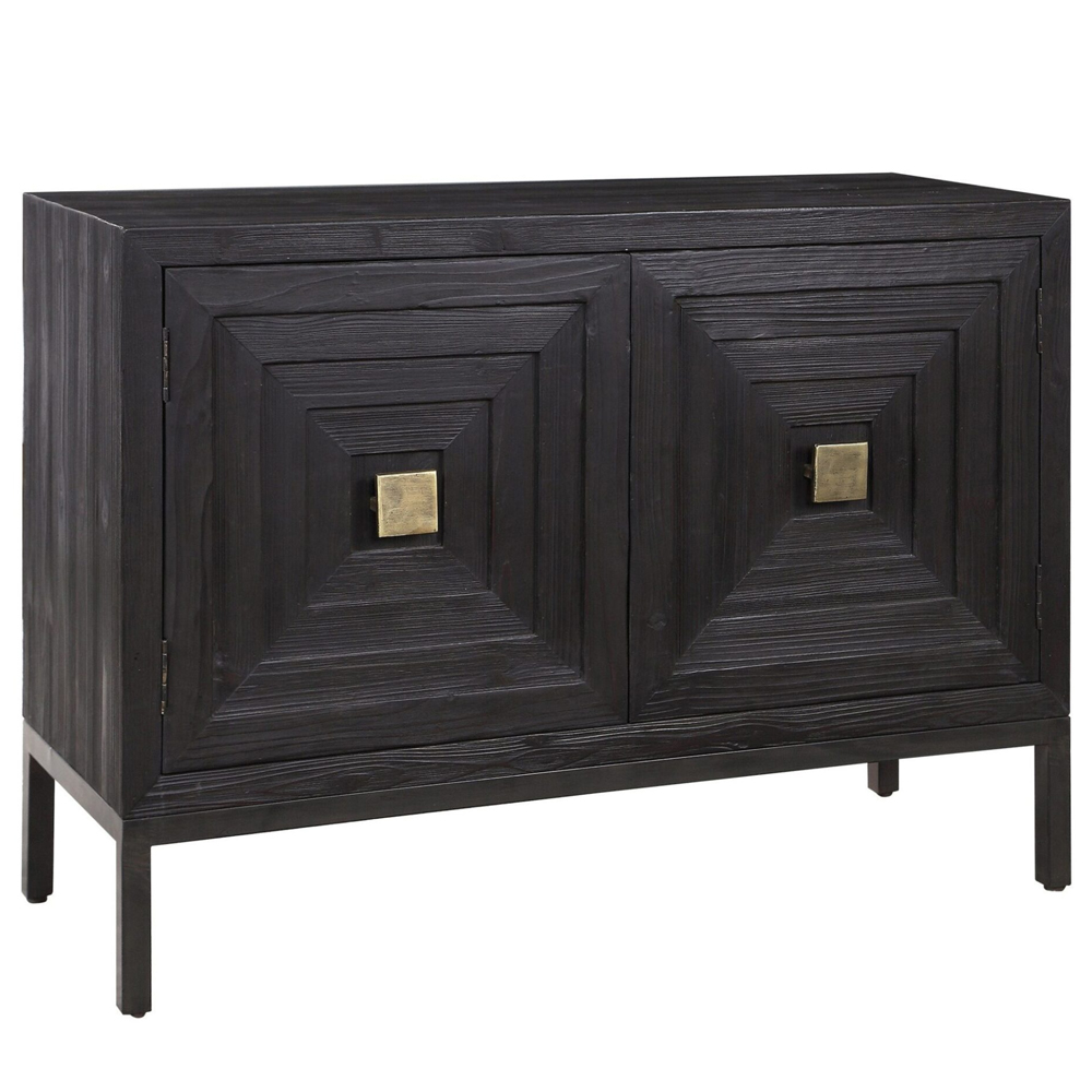 Тумба черная из дерева двухдверная Geometric Double Door Nightstand