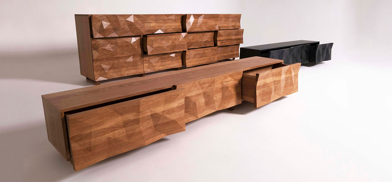 Тумба для ТВ древесного цвета с большими угловыми фигурами Geometric Greece