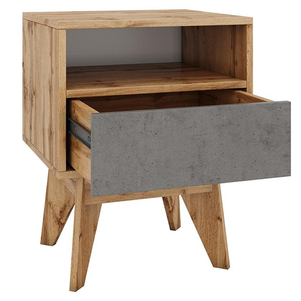 Тумба прикроватная с ящиком и фасадом цвета серый бетон Grace of Furniture