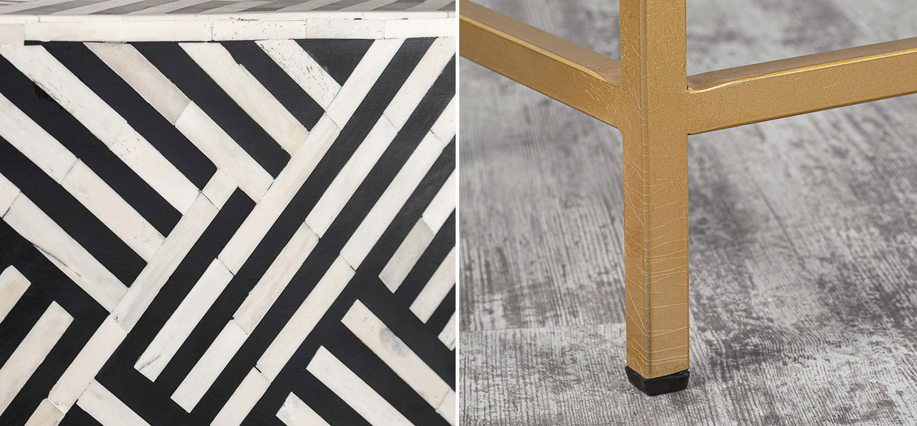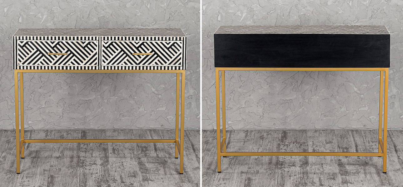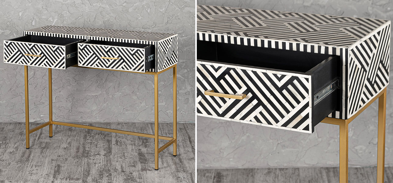 Купить тумбу прямоугольную с инкрустацией Chester – это выбрать произведение искусства, в котором тонкие металлические узоры вложены в поверхность мебели, создавая трехмерный эффект.