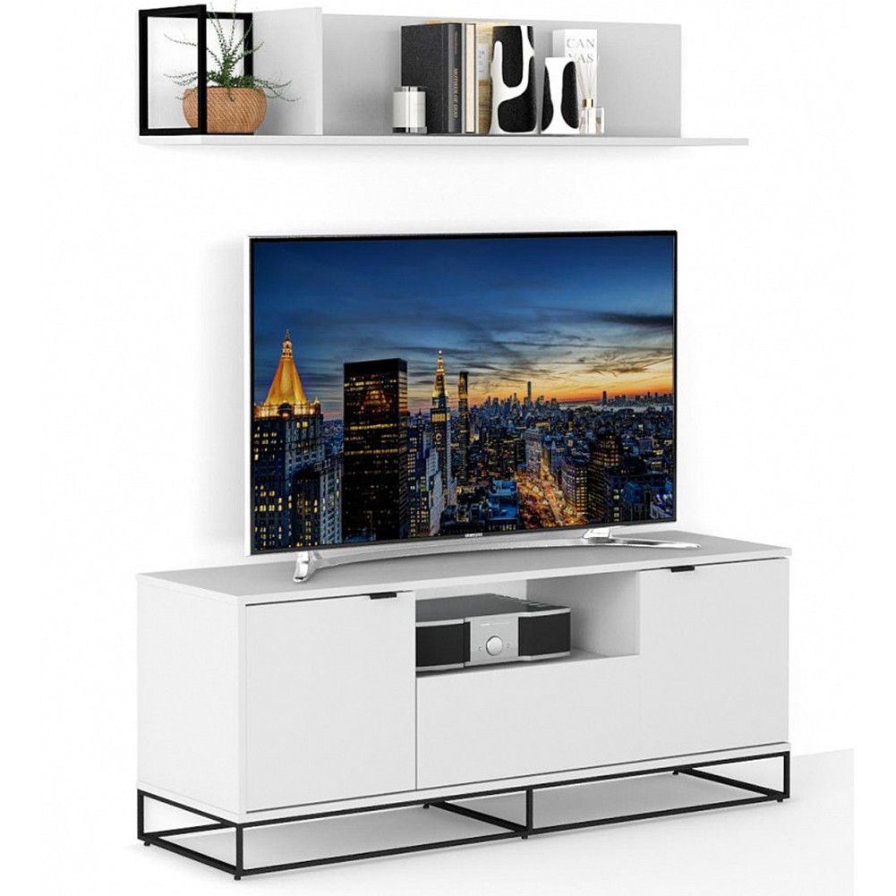 ТВ-тумба белая с 2-мя дверцами и ящиком Strict Lines