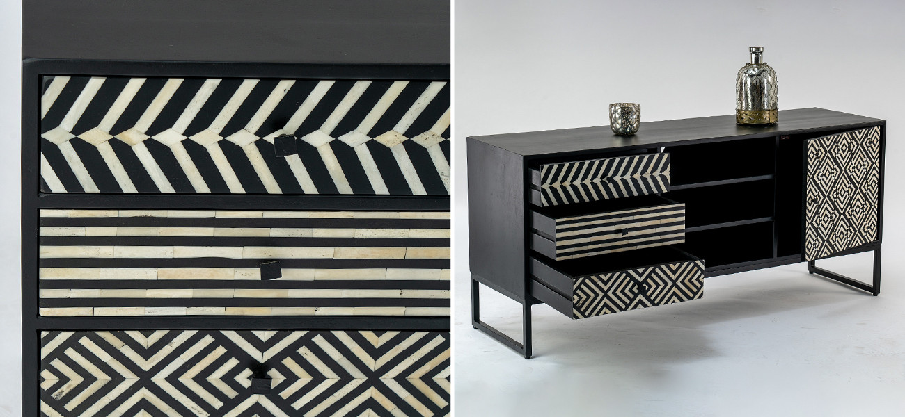 ТВ-тумба с орнаментом инкрустированная костью Bone Inlay 140