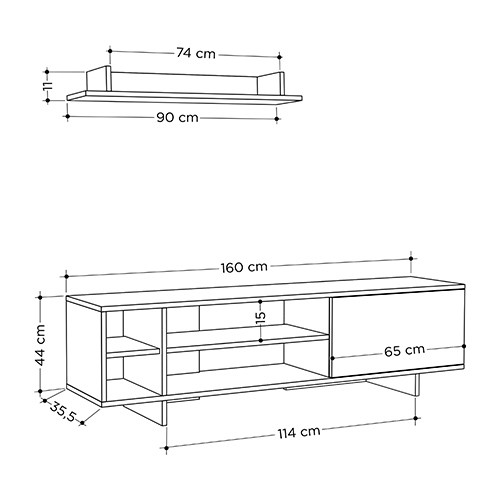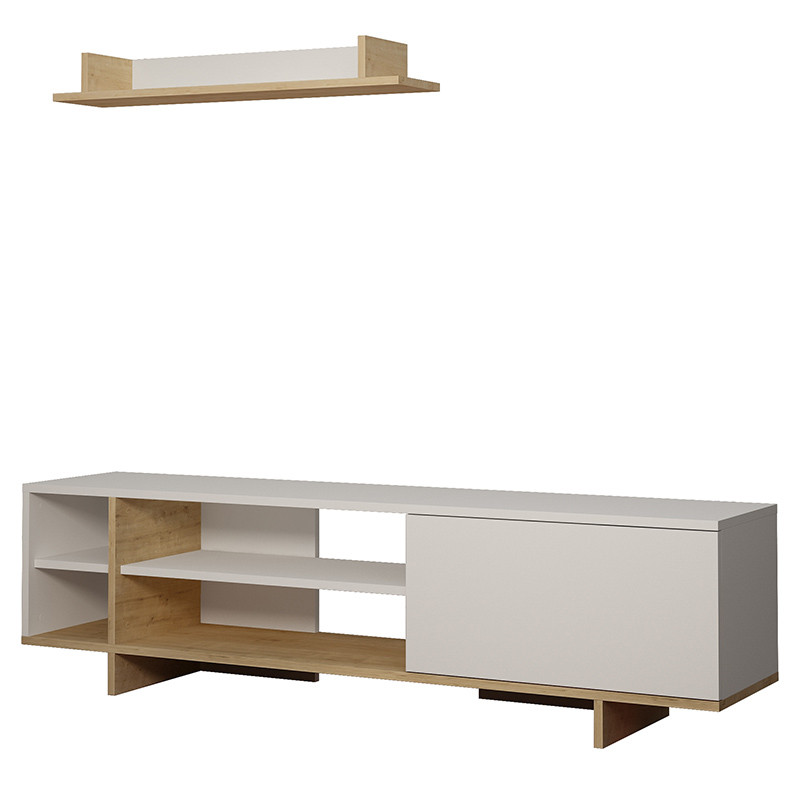ТВ-тумба с откидной дверцей и 4-мя встроенными и 1-ой настенной полкой STOCKTON TV UNIT WHITE