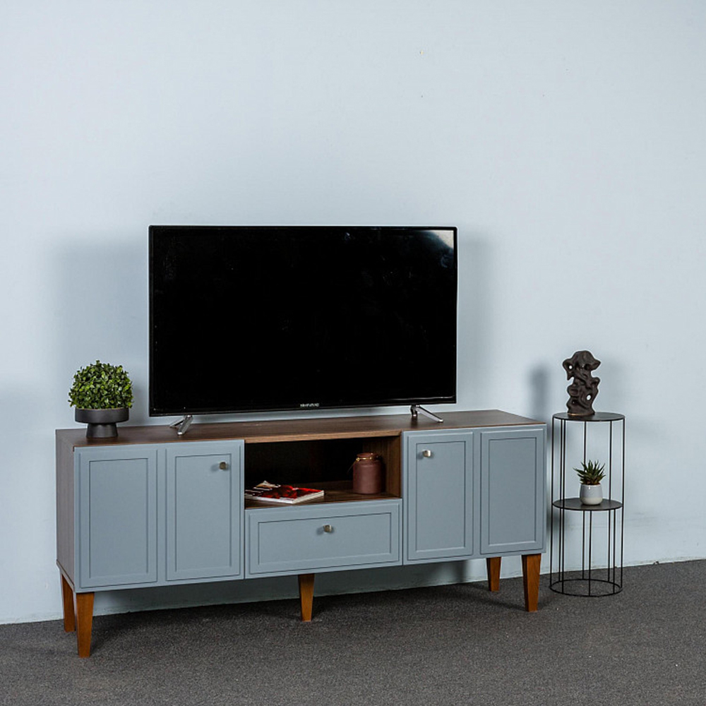 ТВ-тумба серая из массива бука с 2-мя дверками и ящиком Wenge Light
