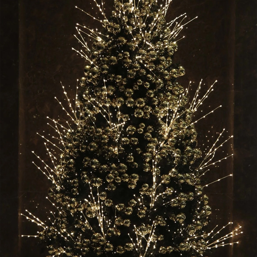 Украшенная Новогодняя Елка с золотыми шарами и гирляндами комплект