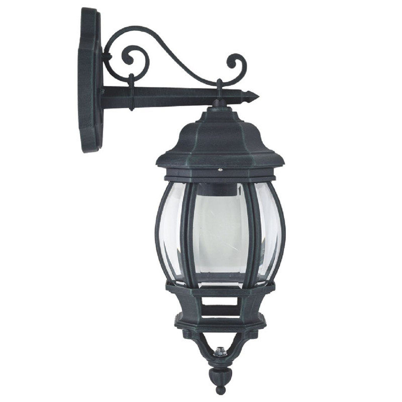 Металл черный с зеленой патиной (эффект окиси бронзы), плафон из прозрачного стекла.