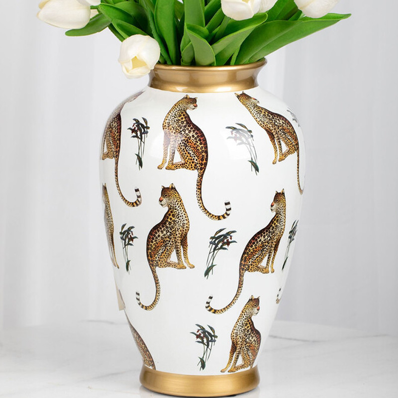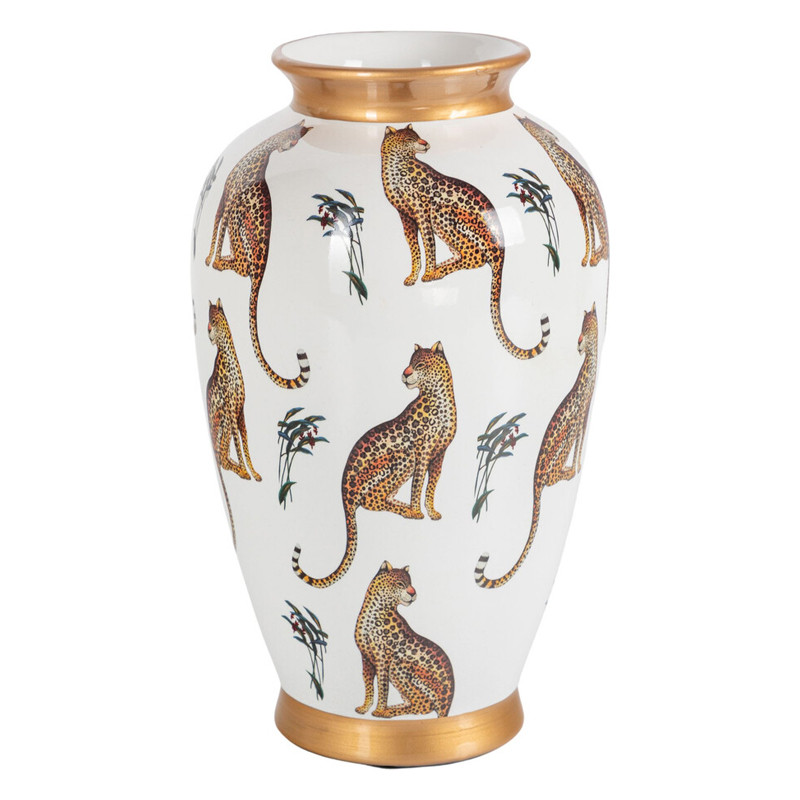 Ваза белая овальная с рисунком леопардов и золотыми акцентами LEOPARD Collection