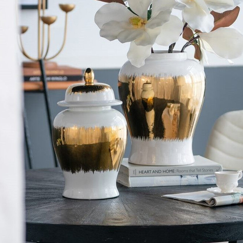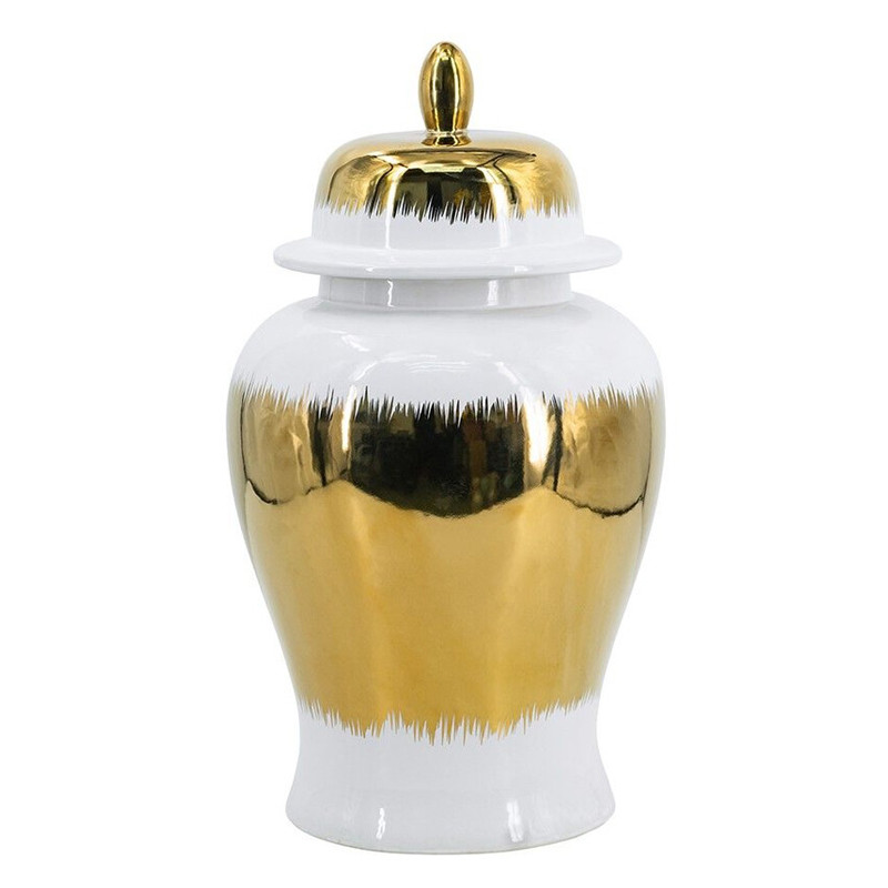 Ваза белая с крышкой и золотистыми фрагментами 46 см Chinoiserie Ceramics