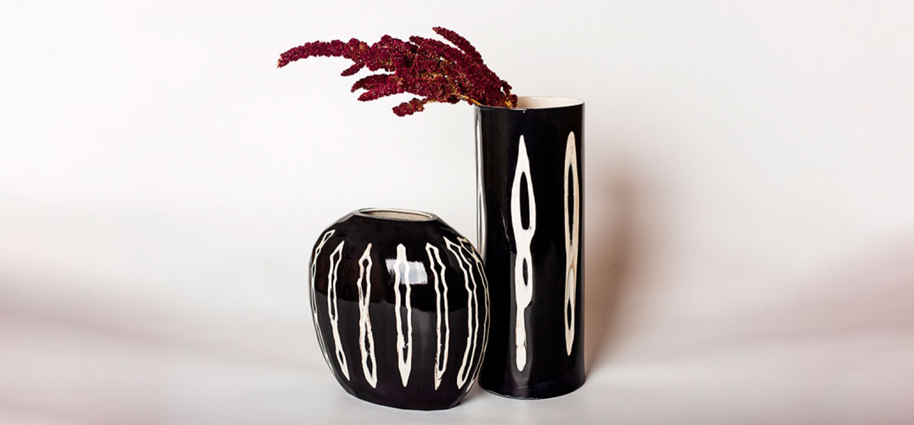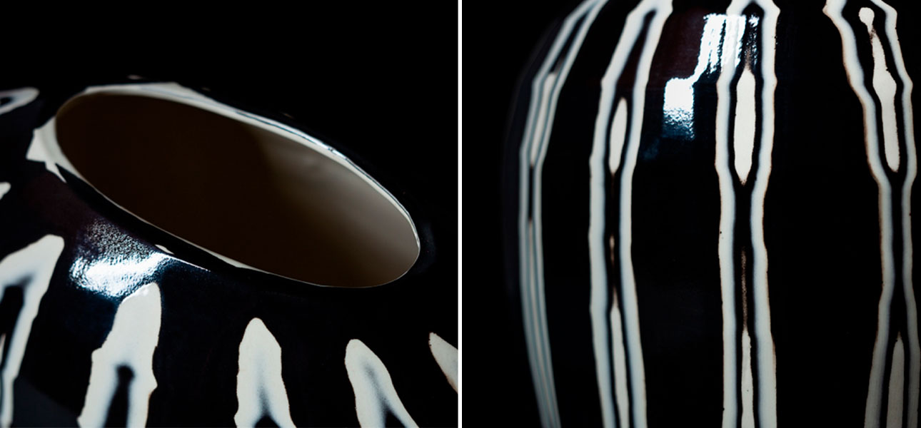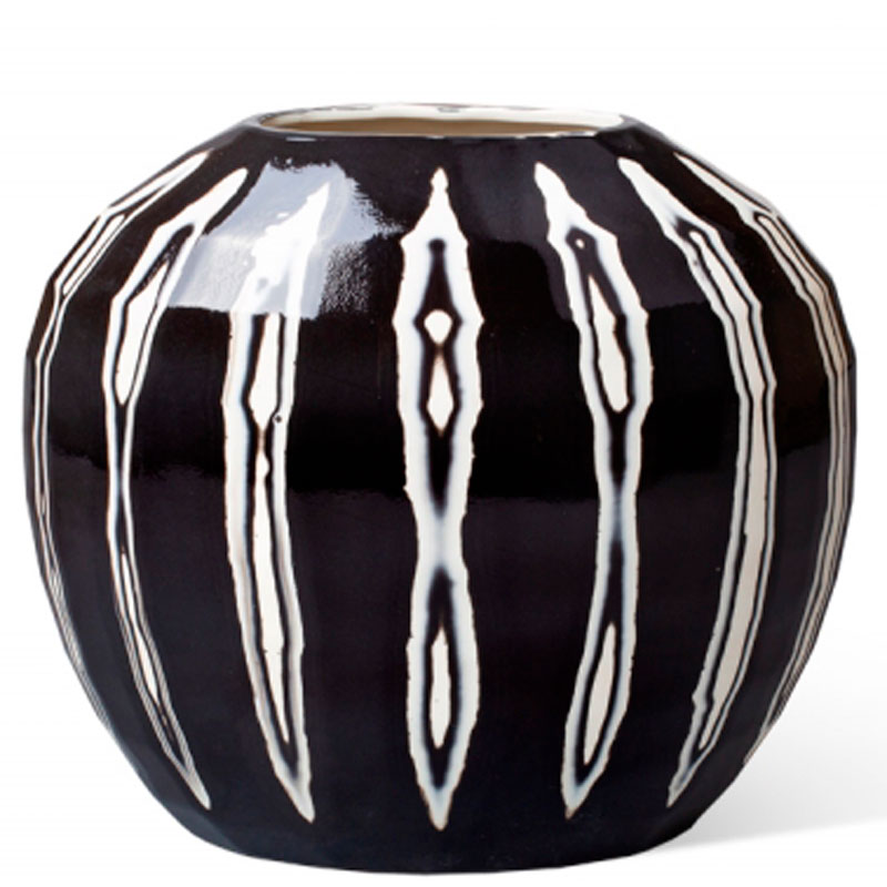 Черно-белая ваза сделана из цветных масс полуфарфора. Бережно оправлена руками и дважды обожжена при температуре 1250 градусов. Несмотря на размер, легкая и практичная.