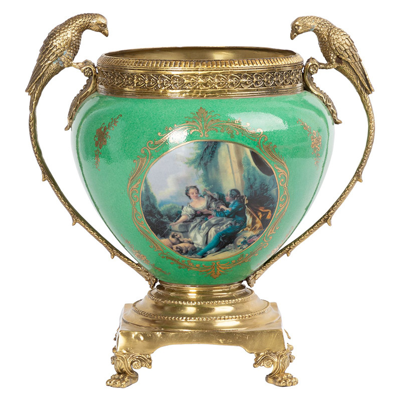 Ваза фарфоровая с орнаментом зеленая Hawk