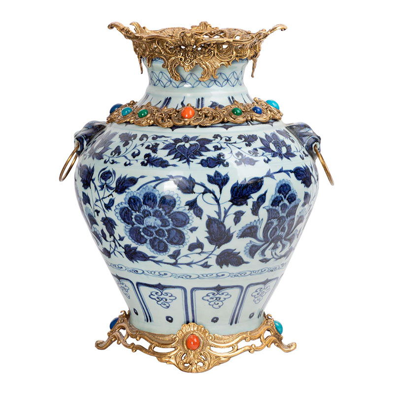 Ваза фарфоровая с синим орнаментом Colored Stones