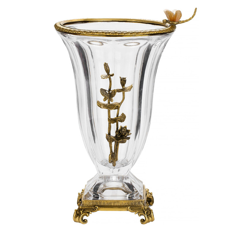 Ваза из прозрачного стекла с бронзовой вставкой в виде цветущей ветви Eden Garden porcelain and bronze