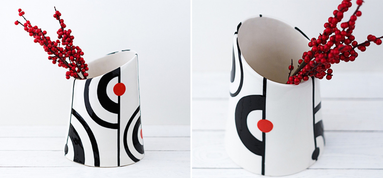 Незамысловатая форма вкупе с контрастным ярким рисунком вазы создадут яркий акцент в интерьере. При этом ваза функциональна и удобна в обращении: широкое горлышко подойдет для больших букетов и сухоцветов, а широкое донышко делает ее невероятно устойчивой.