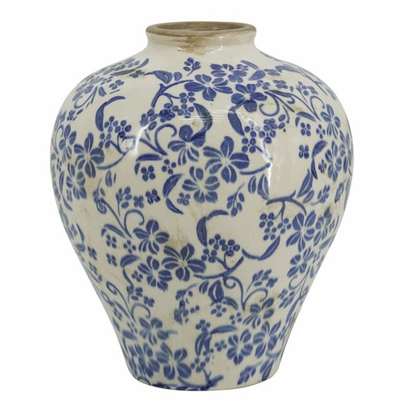 Ваза округлой формы с синим цветочным узором Blue & White Ornament