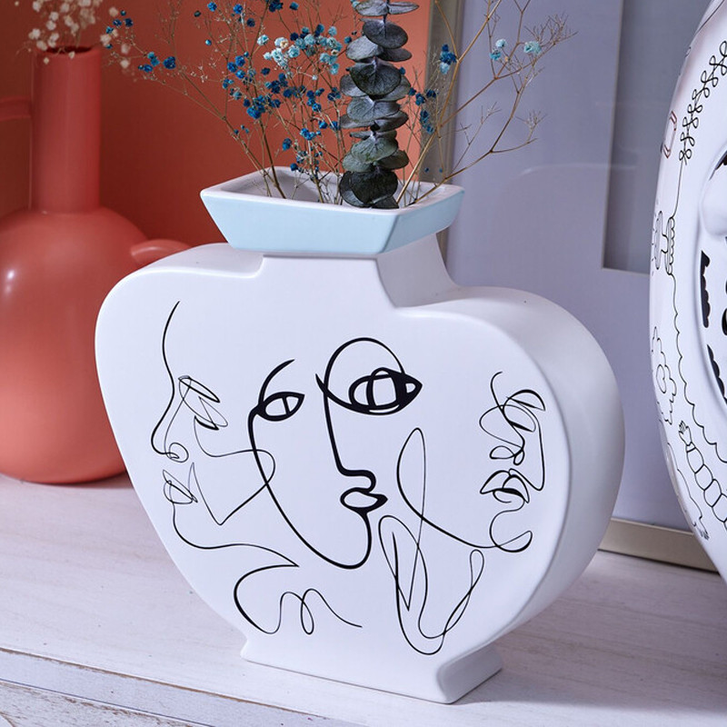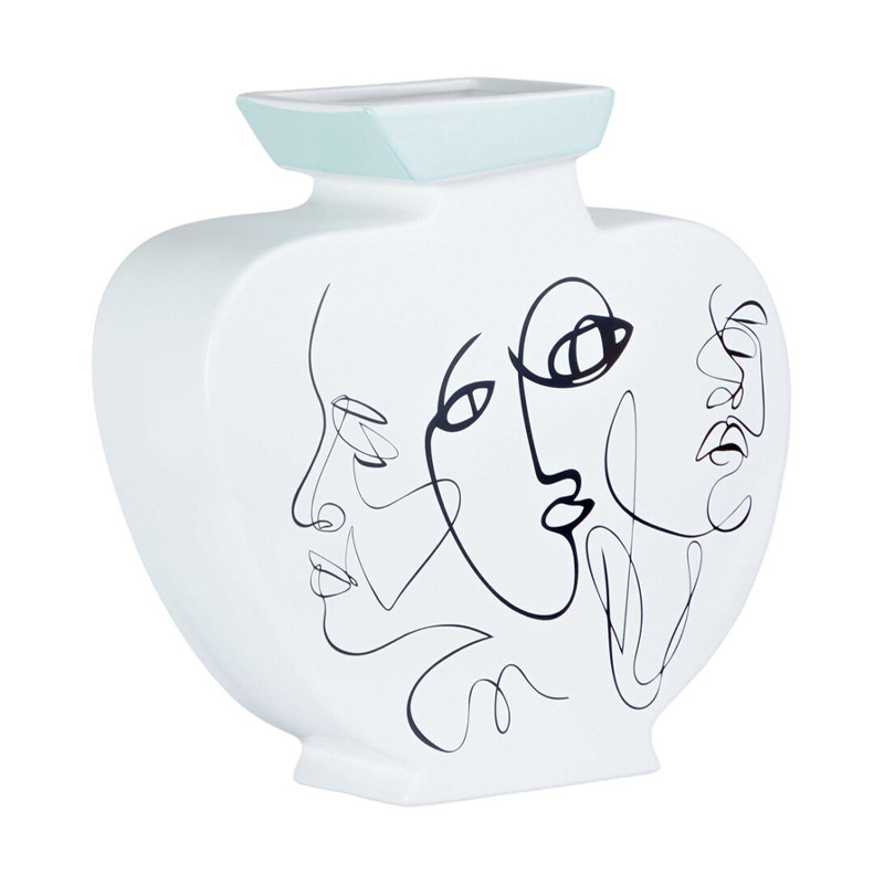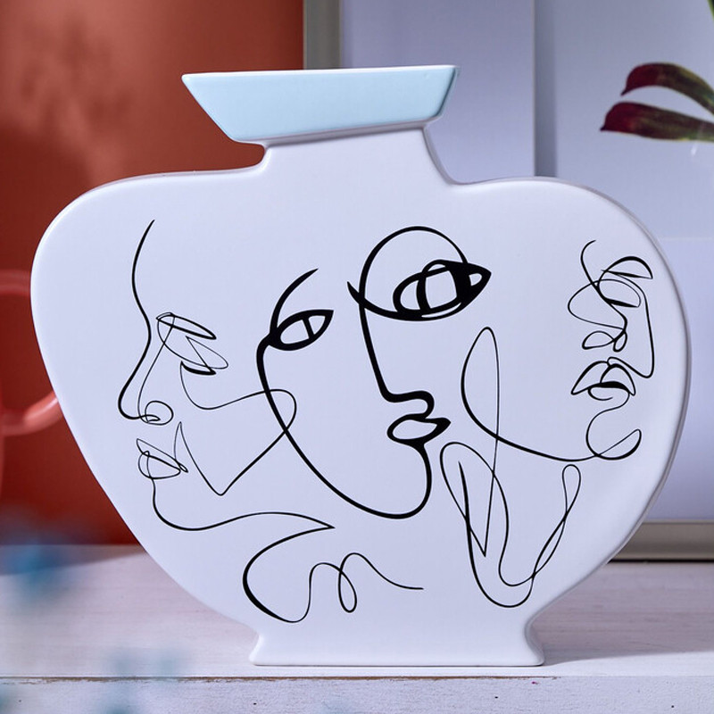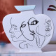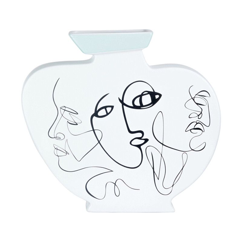 Ваза плоская белая с абстрактными черными линиями в форме лиц Faces of Imagination