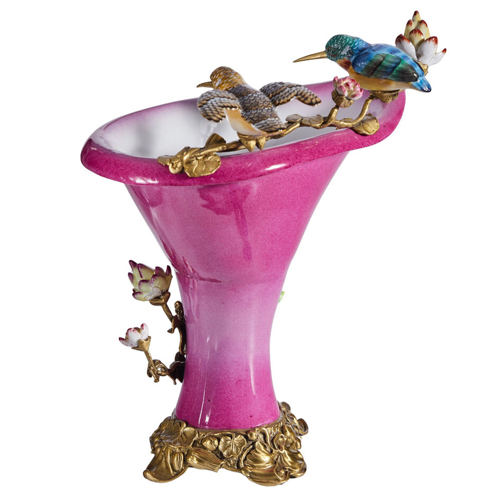 Ваза розового цвета из фарфора с птичкми и цветущими ветвями Garden of Eden