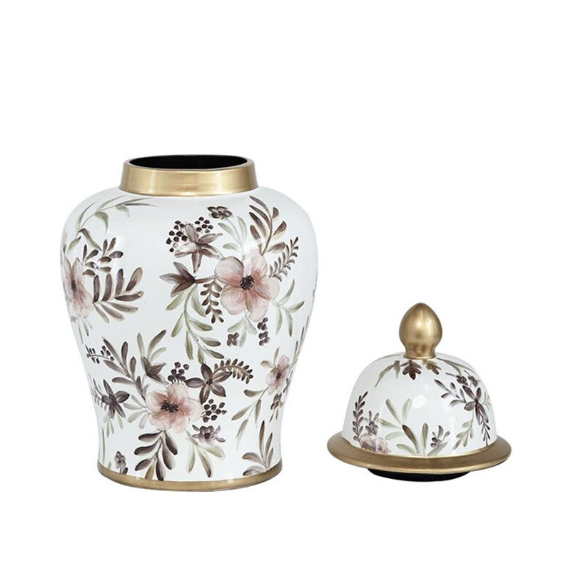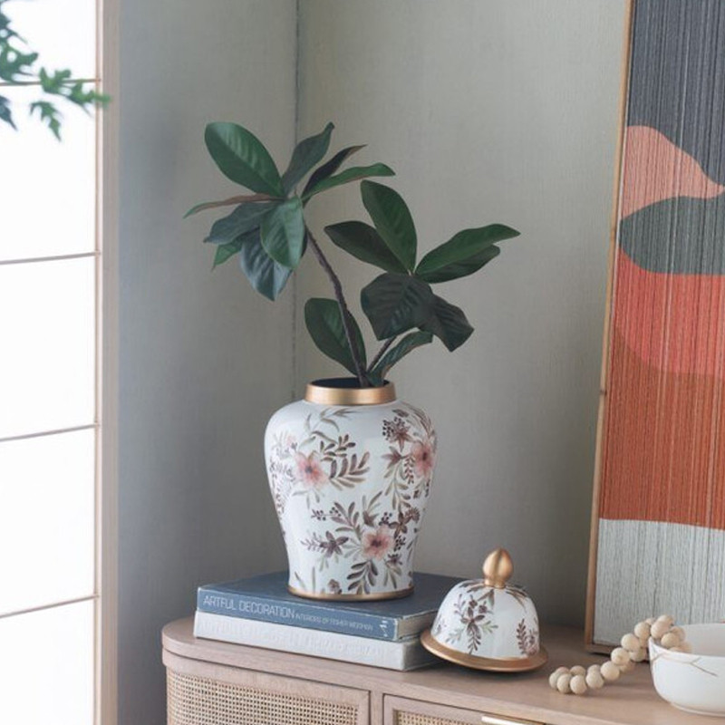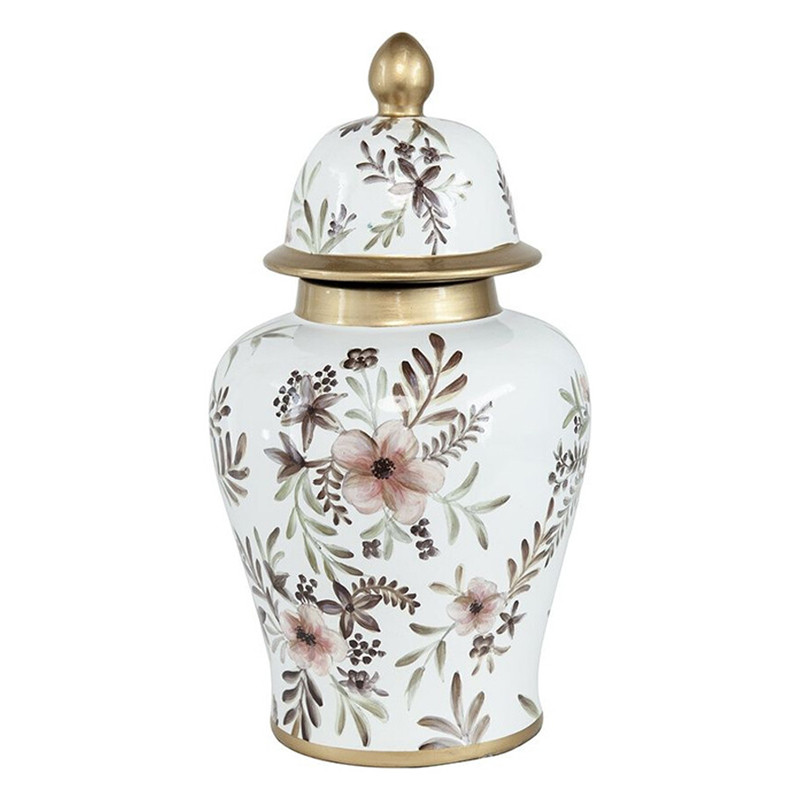 Ваза с нежным цветочным узором в пастельных тонах и крышкой с золотым акцентом Chinoiserie Ceramics