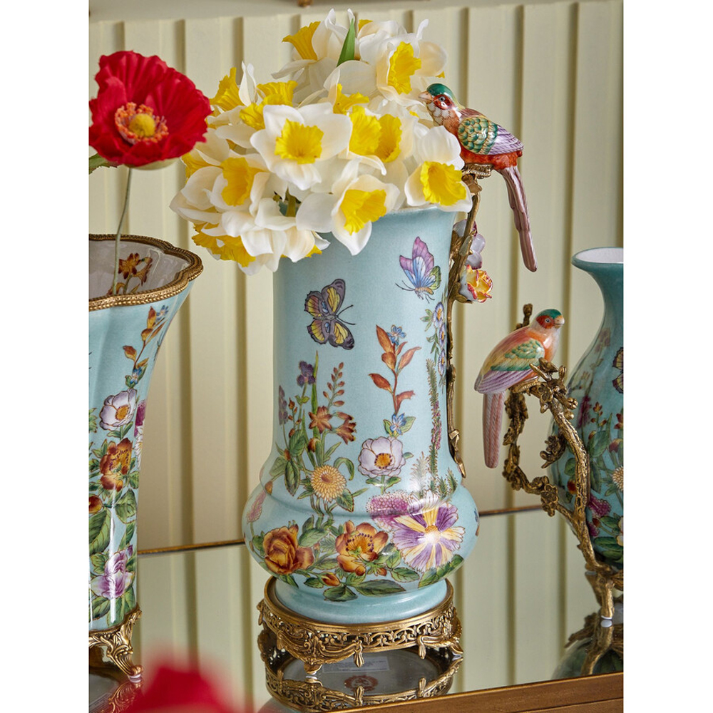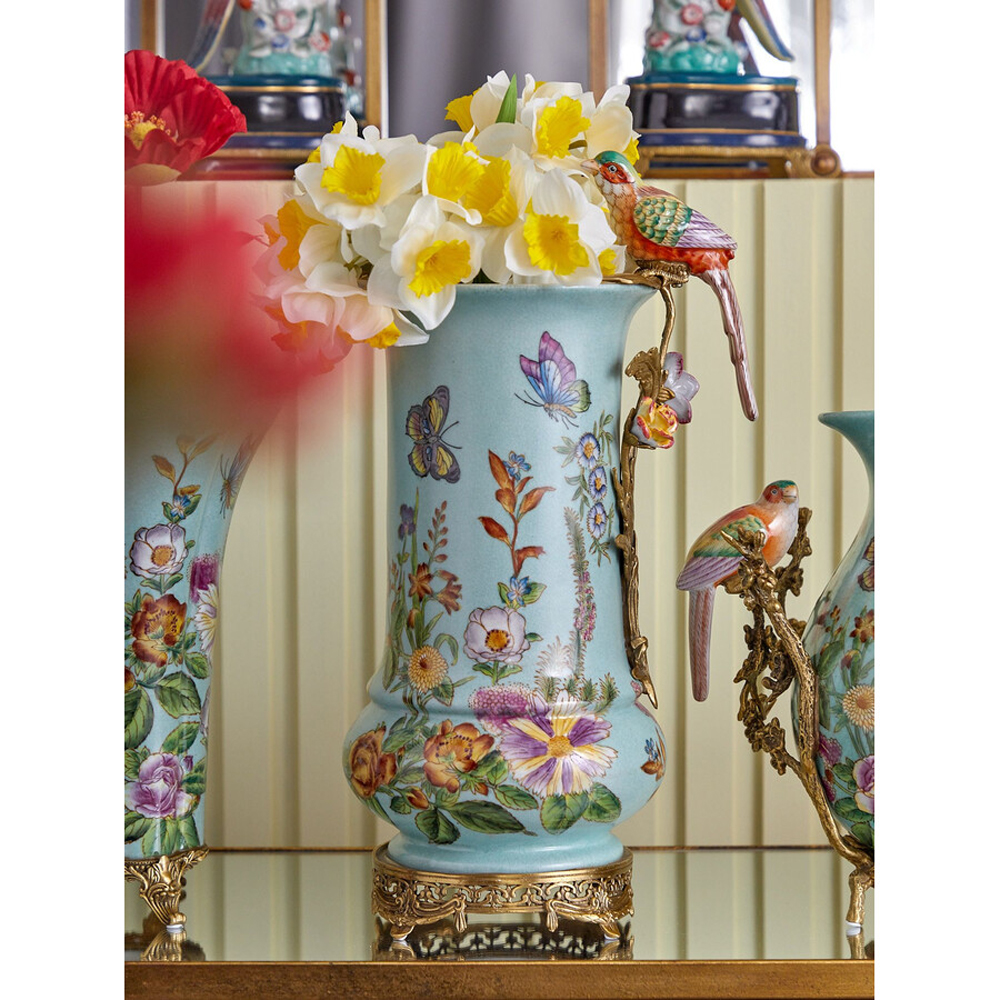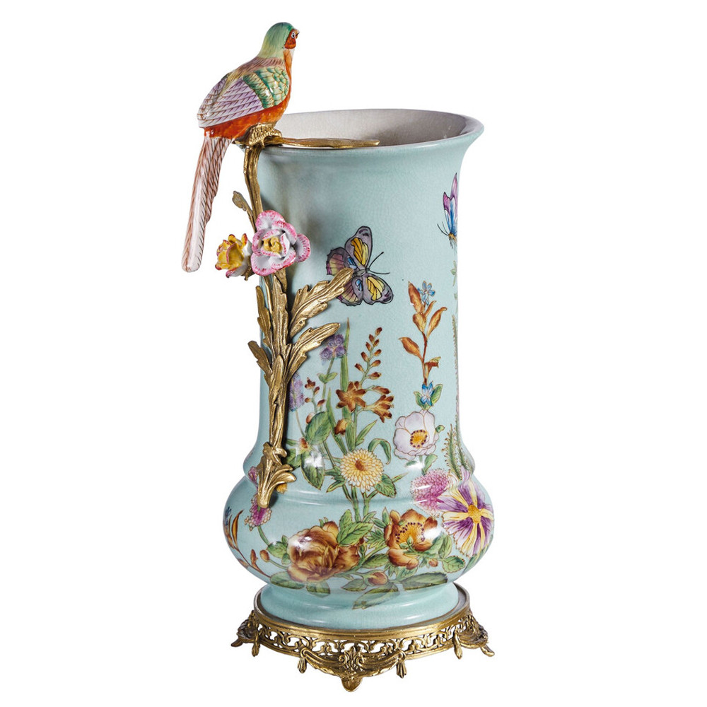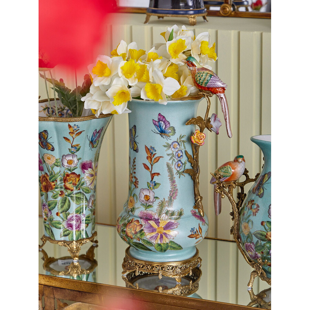 Ваза с птичкой из фарфора с бронзовыми элементами Garden of Eden