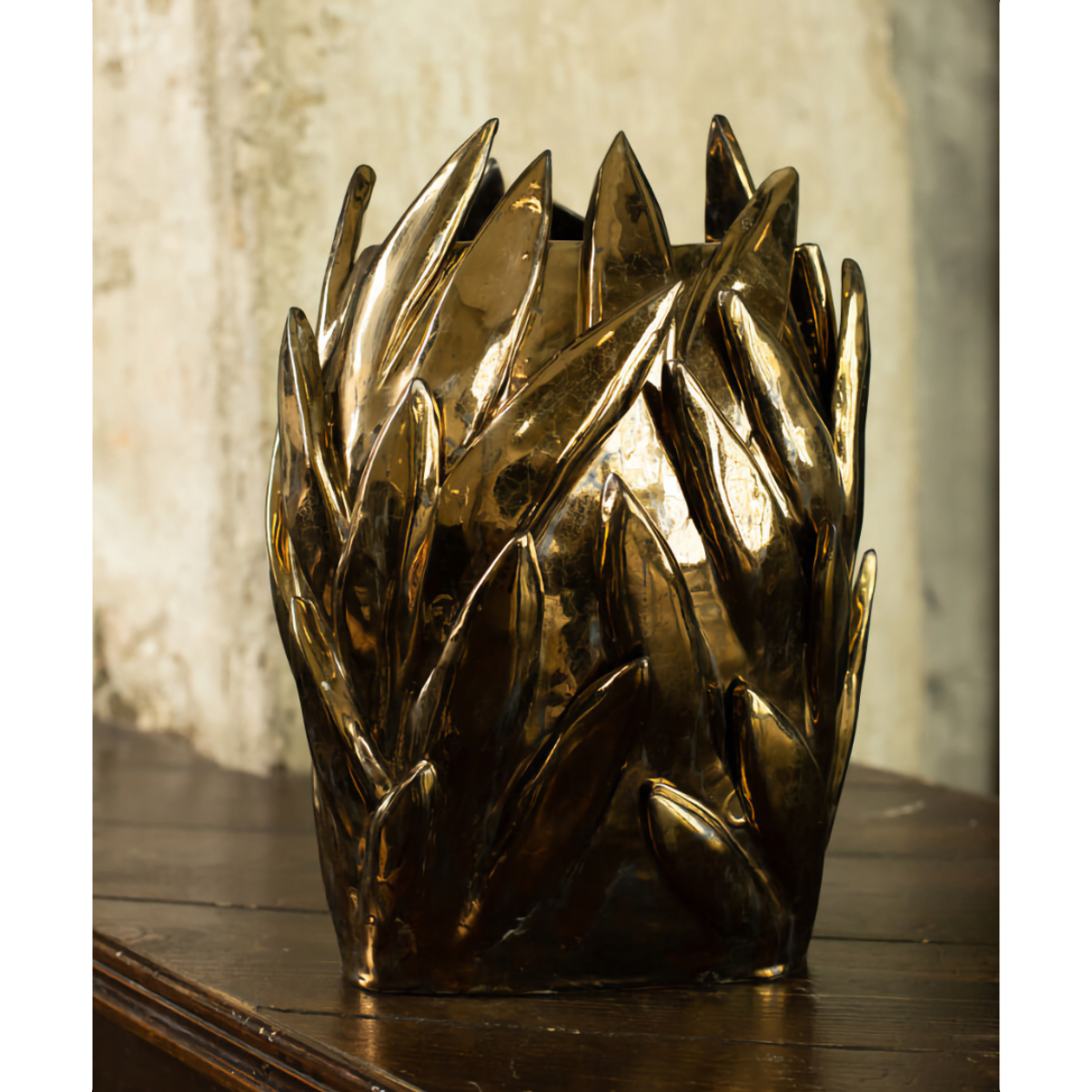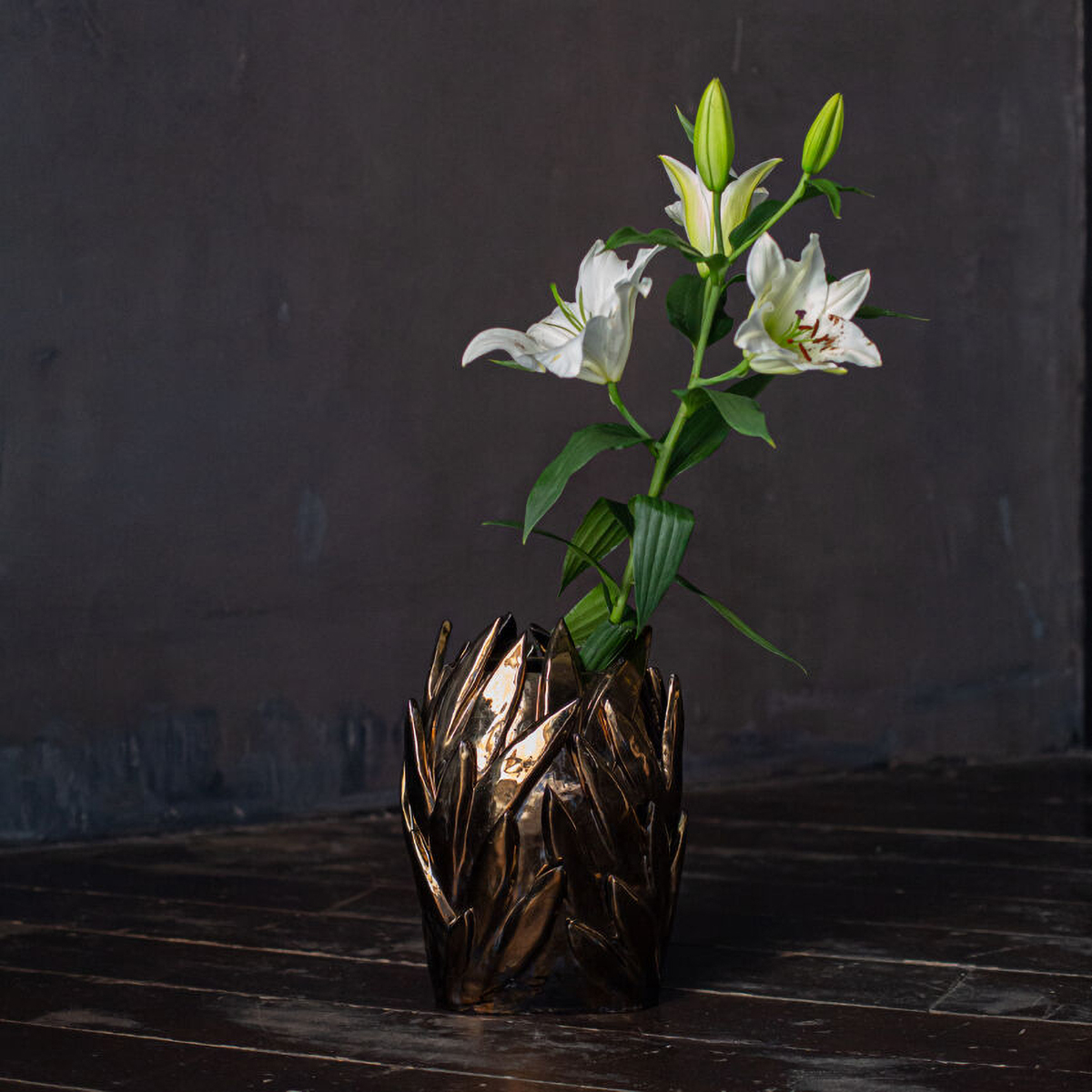 Ваза «Золотая» — это роскошь и элегантность в одном изделии. Изысканная форма, подчеркнутая блеском золотой глазури, делает ее настоящим произведением искусства. Высококачественная керамика и безупречное исполнение гарантируют долговечность и неповторимый блеск. Эта ваза станет центральным элементом любого интерьера, привнося в него атмосферу роскоши и изысканности. Ваза «Золотая» — идеальный выбор для тех, кто ценит безупречное качество и эксклюзивный дизайн.