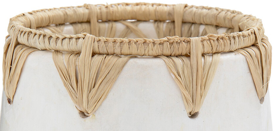 Ваза Ceramic Vase & Rattan white D13 из керамики и отделкой из сизаля вверху. Воду не наливать.