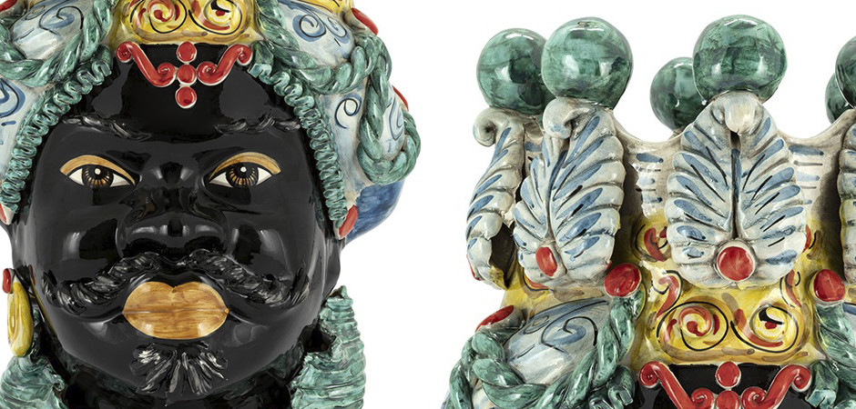 Сицилийская традиционная керамическая ваза в виде головы мужчины в национальном уборе. Ваза изготовлена и расписана вручную.