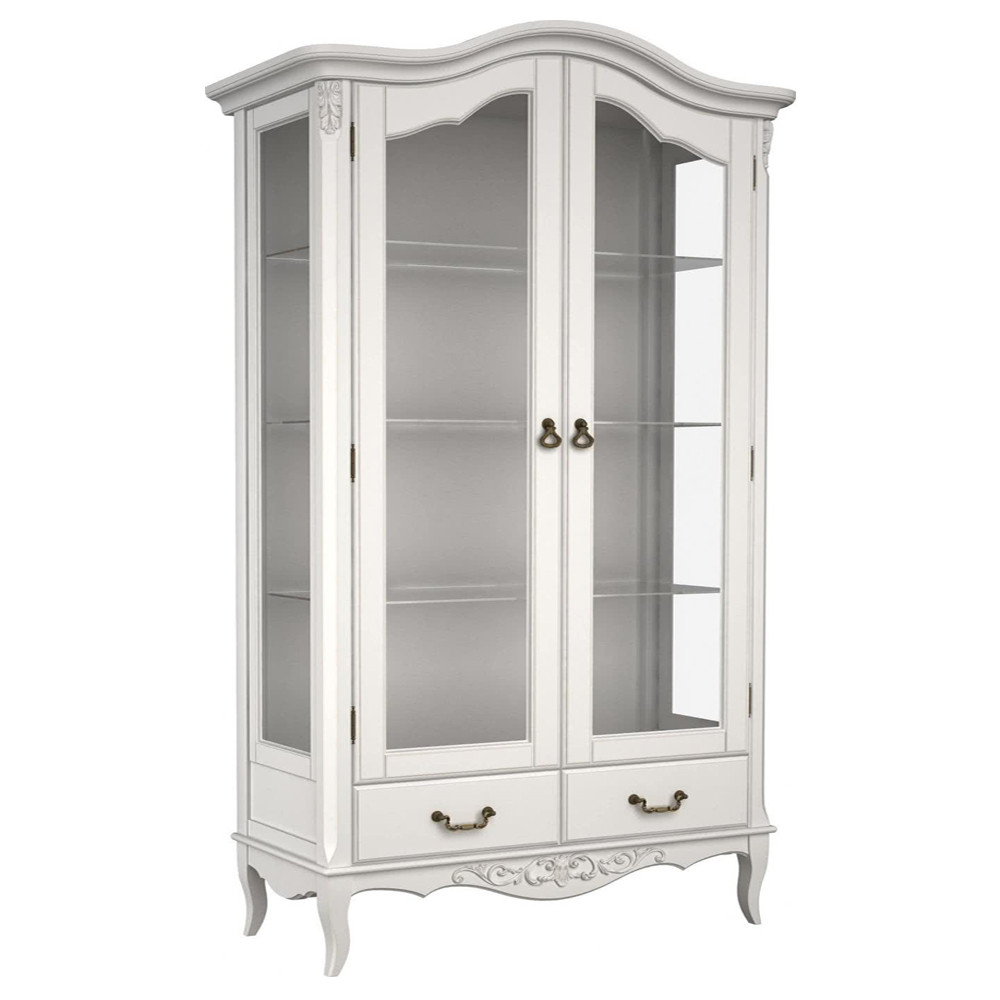 Витрина белая двухдверная с 4-мя полками и 2-мя ящиками в стиле прованс White Provence