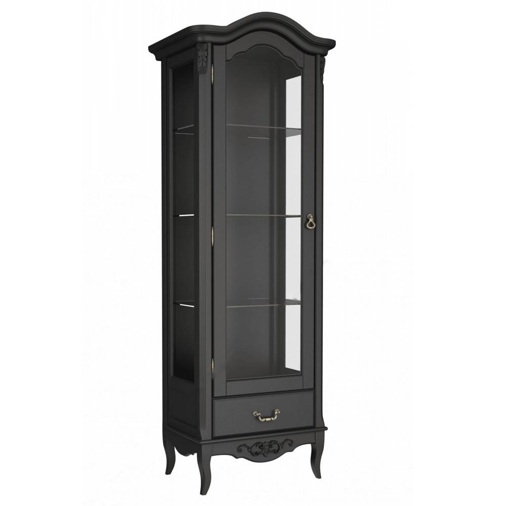 Витрина черная однодверная из массива бука с 4-мя полками и ящиком Black Provence
