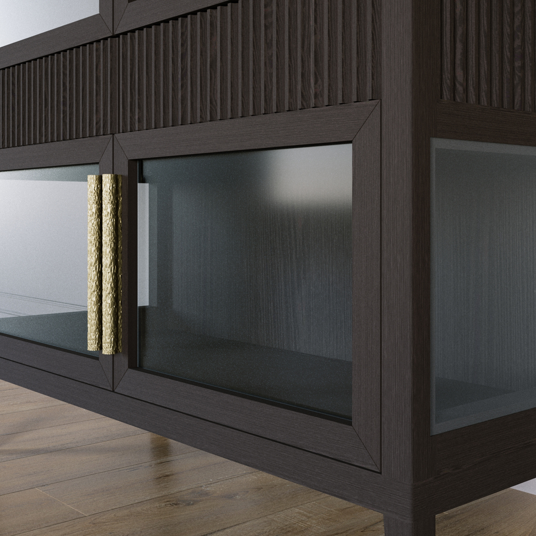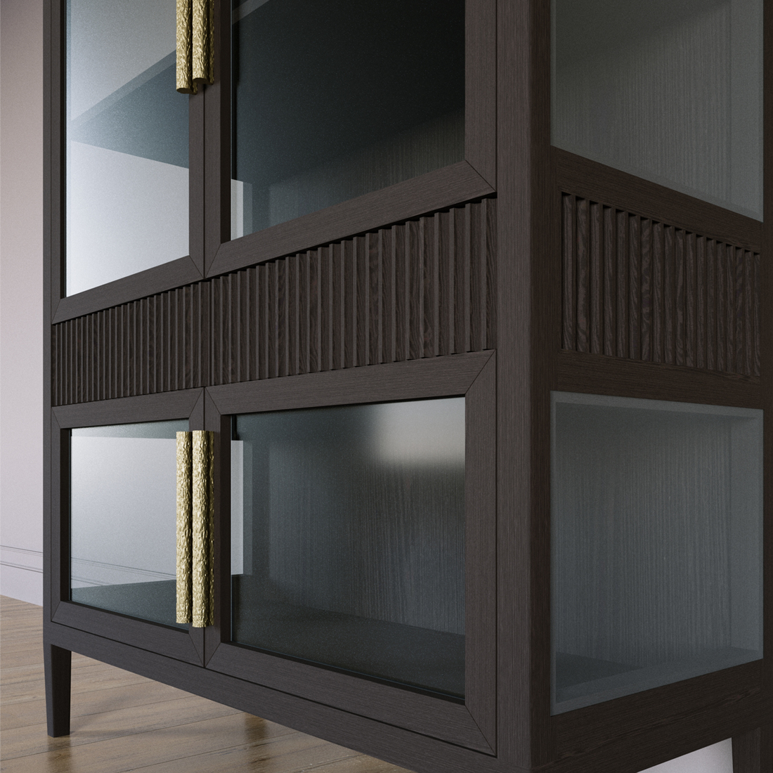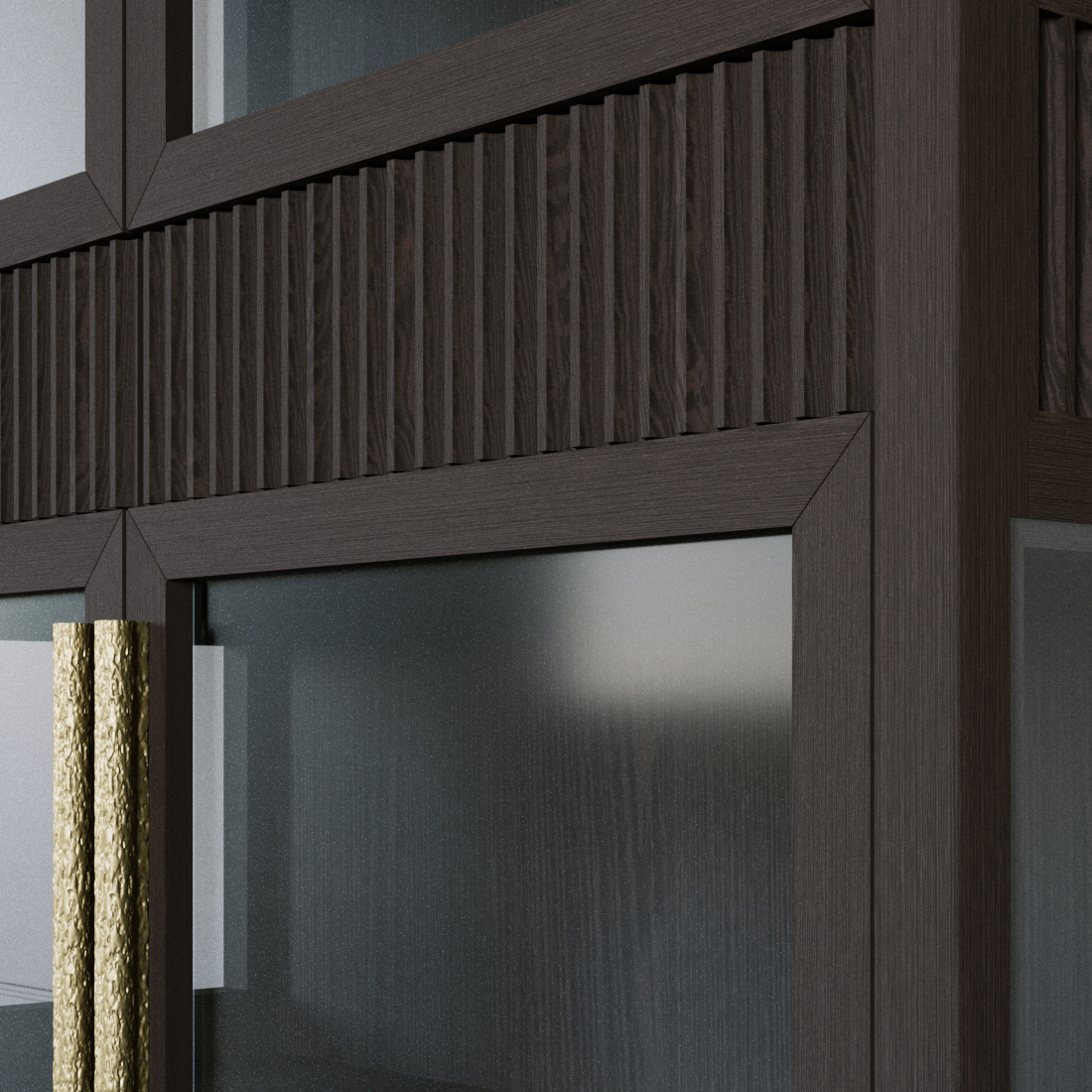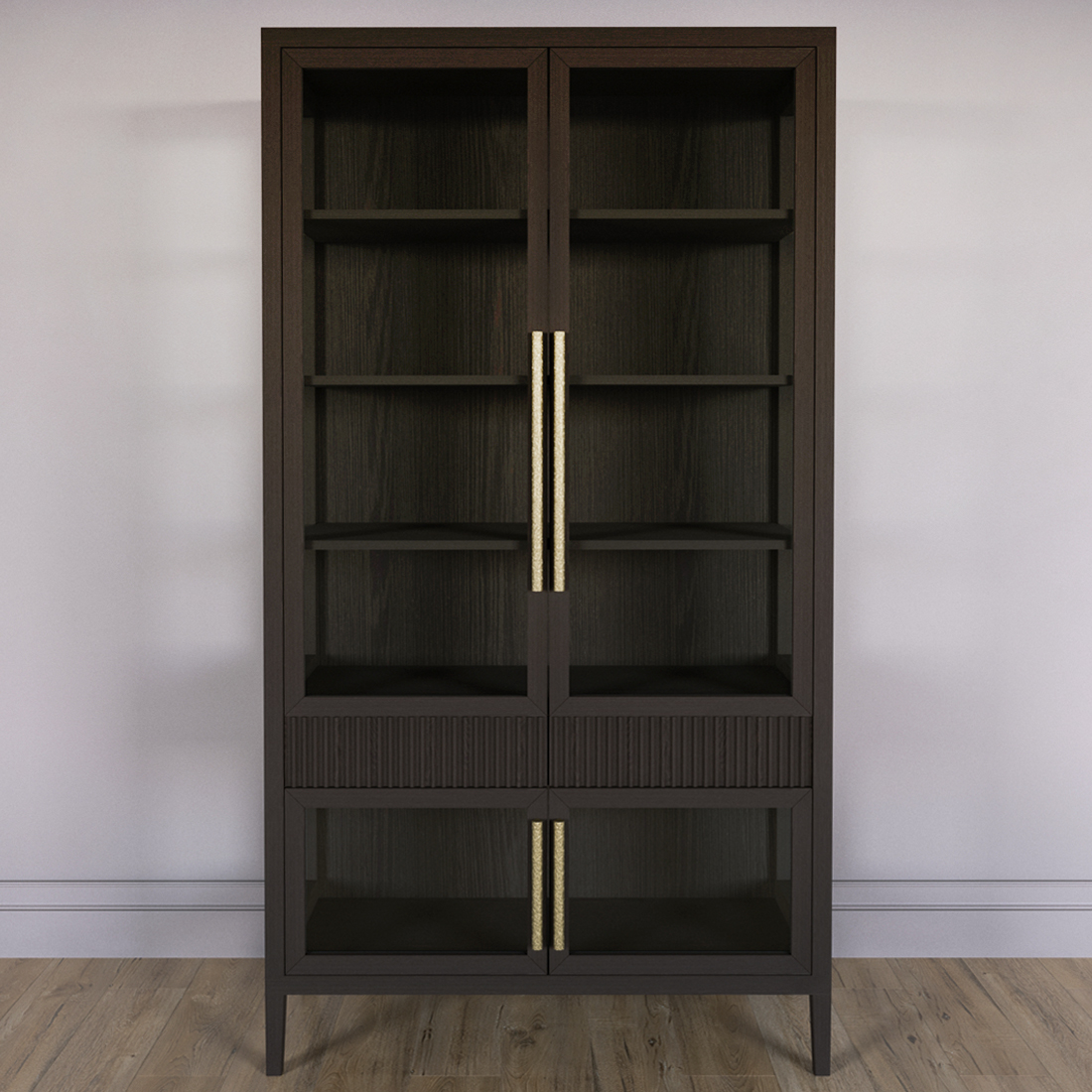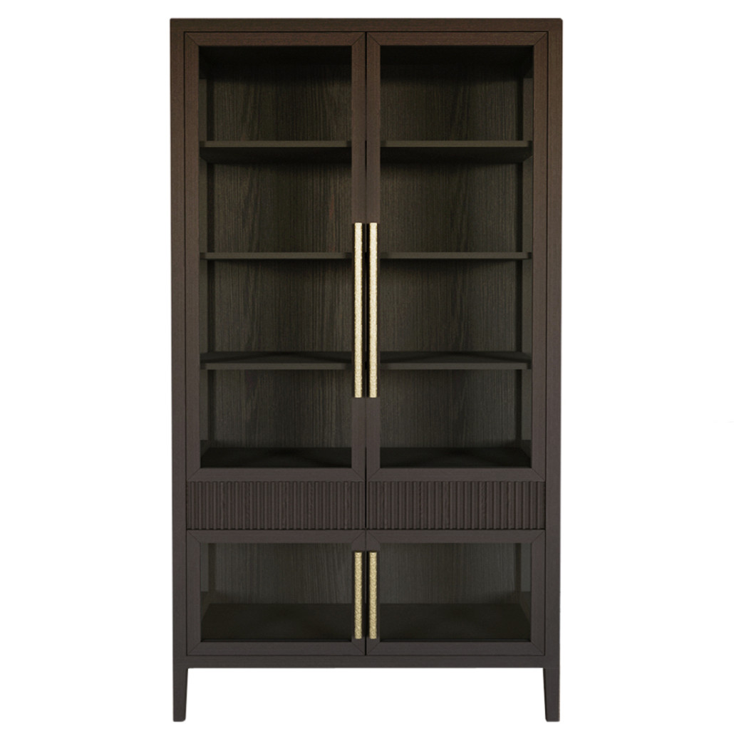 Витрина Primo со стеклянными фасадами и 2 ящиками Темный орех