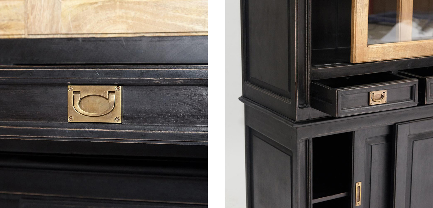 Выполненная из массива акации и манго, эта витрина является воплощением природной прочности и неподдельности. Черный цвет придает ей элегантность и таинственность, словно открывая врата в мир загадок и непостижимой красоты.