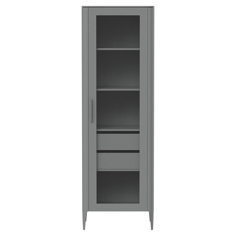 Витрина серая со стеклянной дверью с 4-мя полками и 2-мя ящиками Type