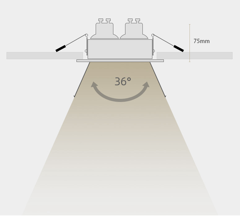 Размер отверстия в потолке: 21.5 х 10.5 см, угол света 36°