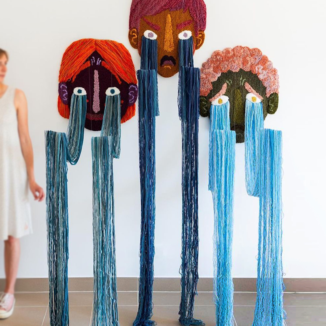 Вязаный Арт-Объект на стену из трех элементов Triptych