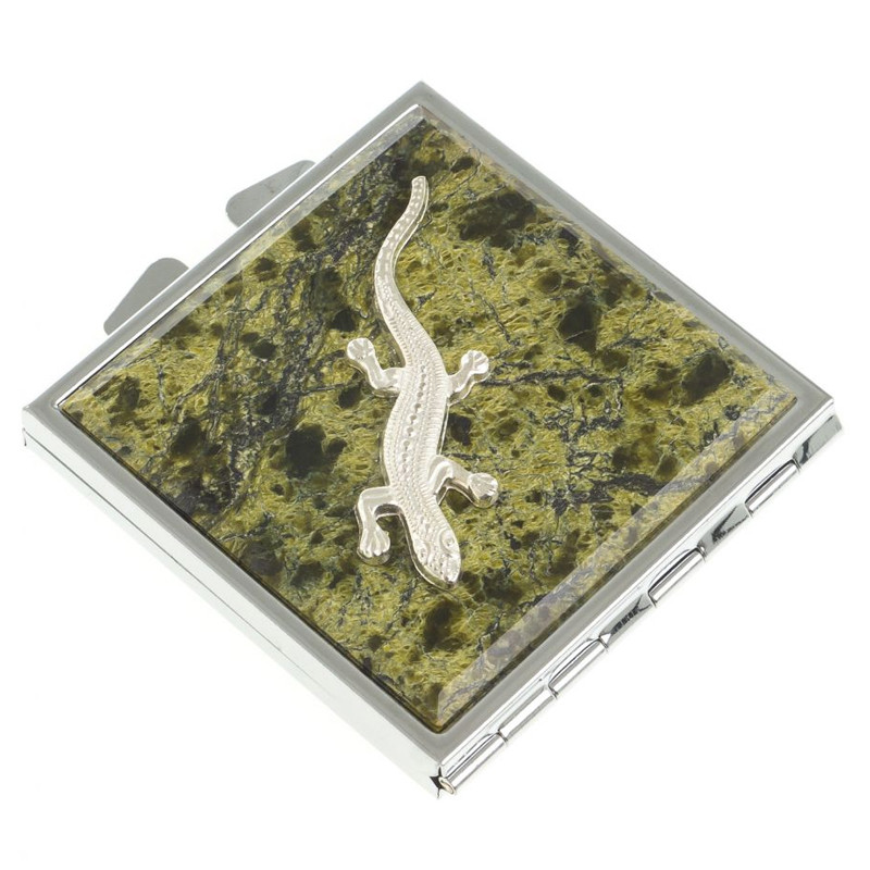 Зеркало двухстороннее квадратное из натурального камня Змеевик с декоративной вставкой в виде ящерицы Silver Stone Mirrors