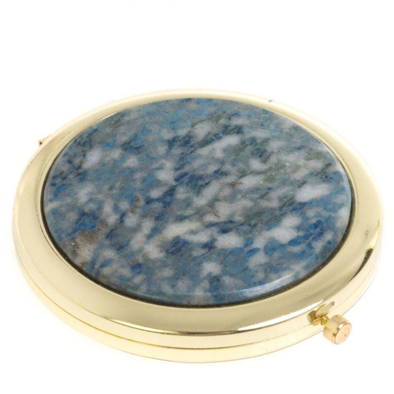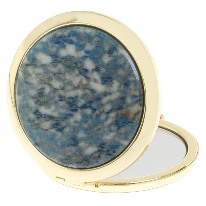 Зеркало карманное складное круглое из натурального камня Лазурит в подарочной упаковке Gold Stone Mirrors