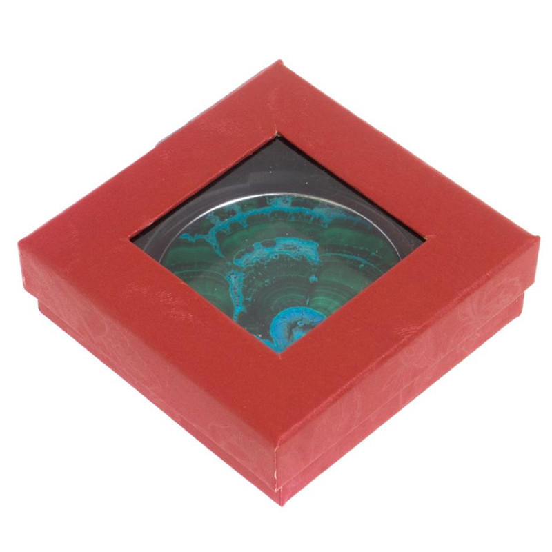 Зеркало карманное складное круглое из натурального камня Малахит с Хризоколлой в подарочной упаковке Silver Stone Mirrors
