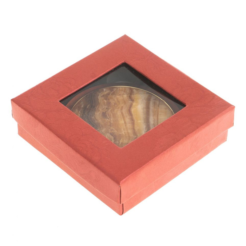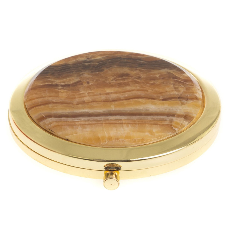 Зеркало карманное складное круглое из натурального камня Оникс в подарочной упаковке Gold Stone Mirrors