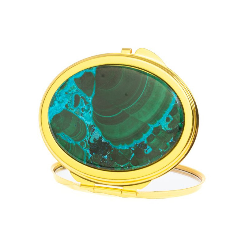 Зеркало карманное складное овальное из натурального камня Малахит с Хризоколлой Gold Stone Mirrors