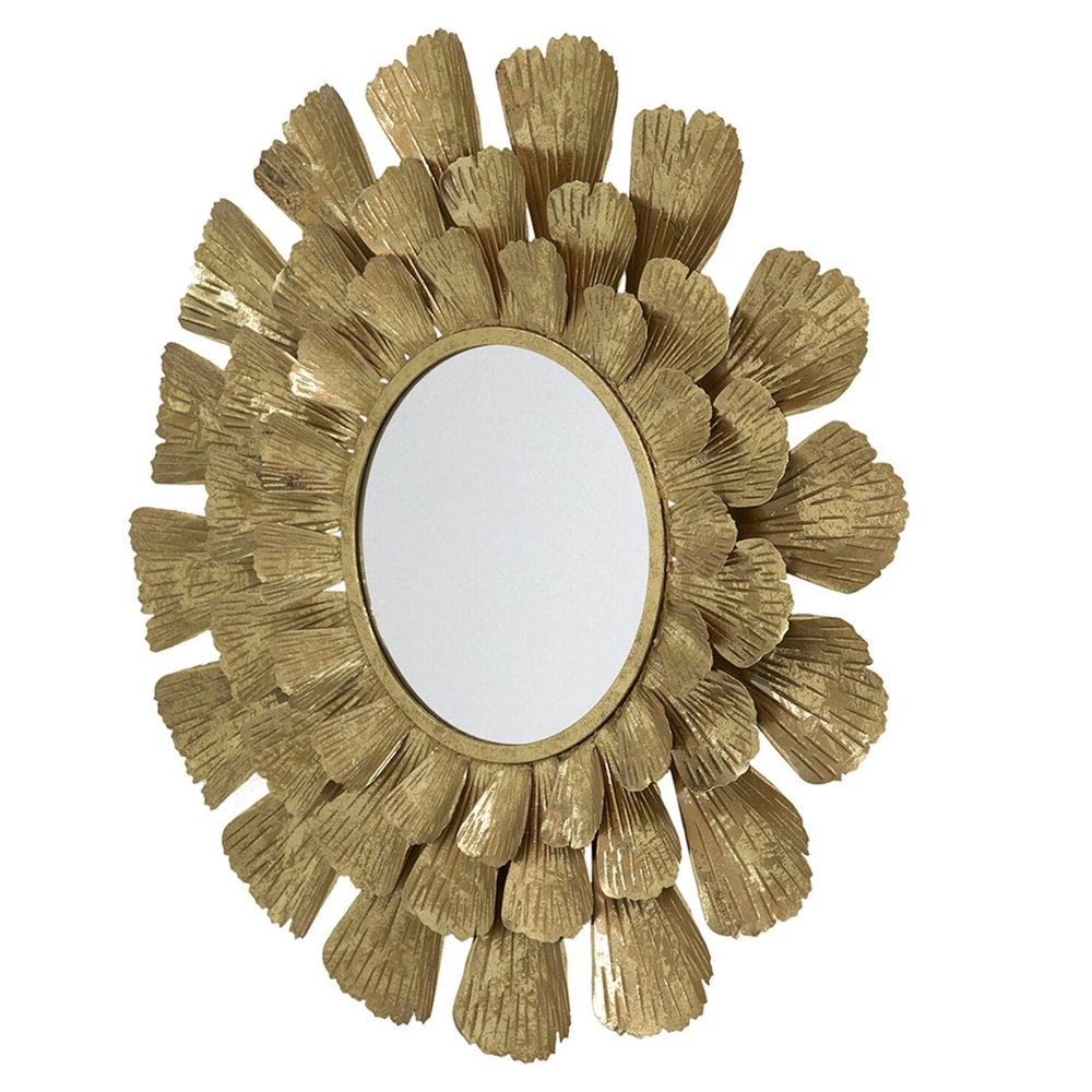 Зеркало круглое настенное в металлической раме Sunny Golden Petals