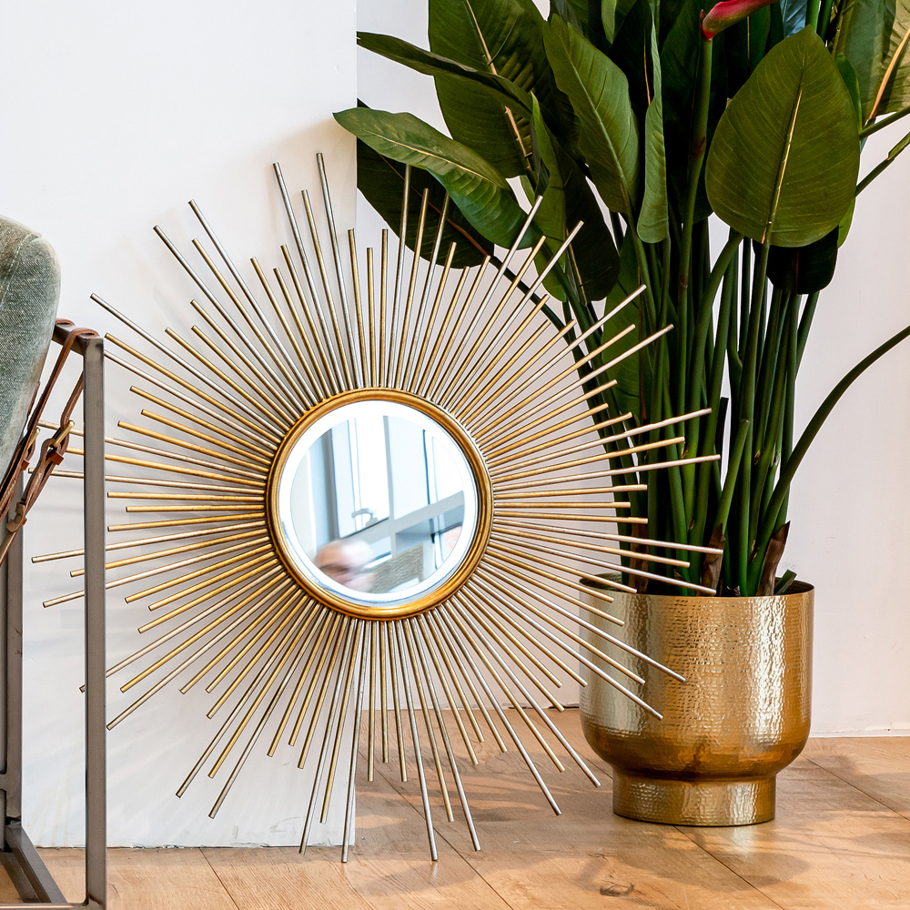 Зеркало-солнце круглое в раме из металла с золотыми с лучами Rays of Peace