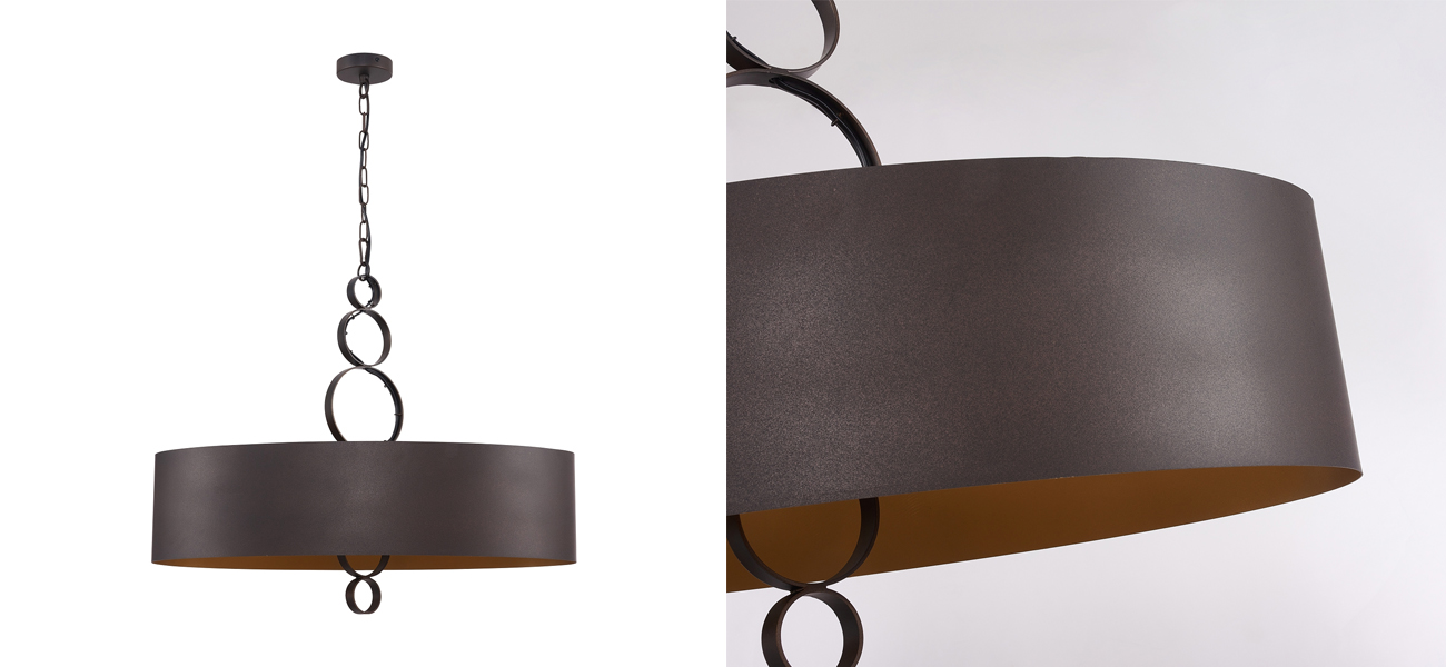Каркас двух цветов - коричневого цвета с внешней стороны и цвета золота с внутренней, декоративные элементы в виде колец.